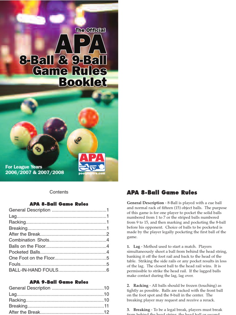 It is also easier to control the cb since less power is required. The rules for 8 ball pool can be confusing, as there are several international variations. These breaks spread the balls well and often result in pocketing a ball. Foul penalty opposing player gets cue ball in hand. The black 8 ball can be potted anywhere, however, it must be declared beforehand.